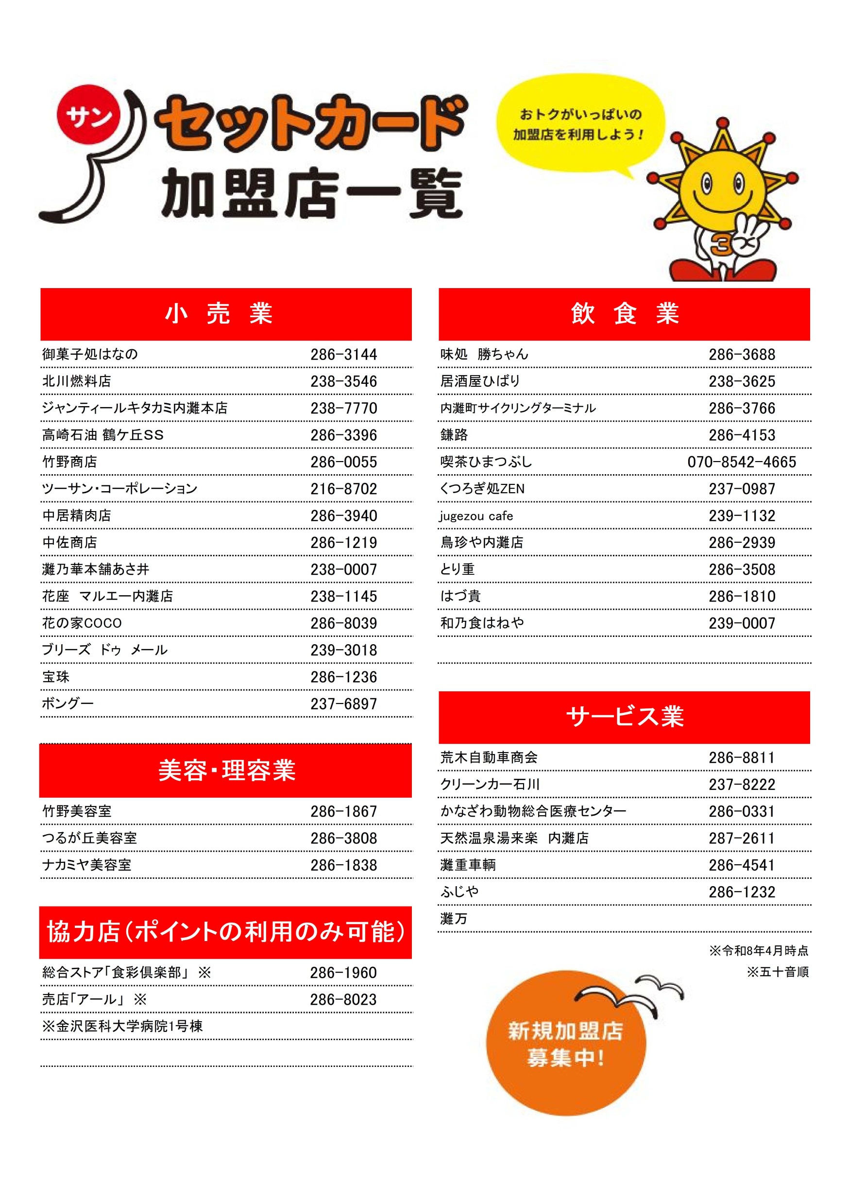 サンセットカード加盟店一覧
