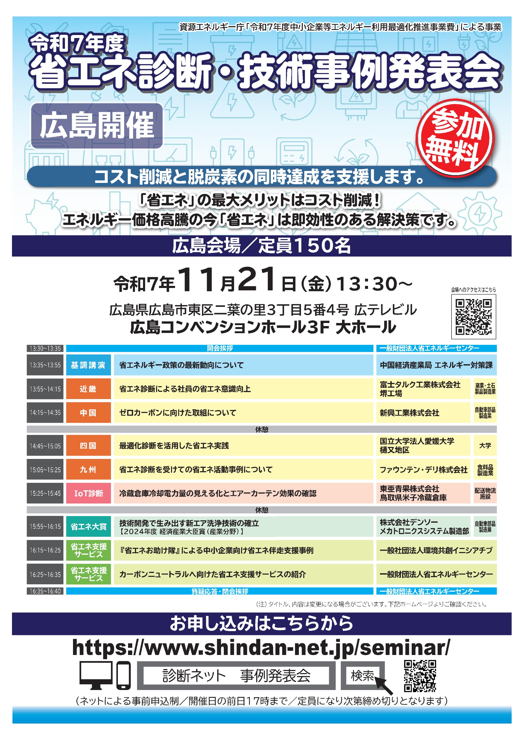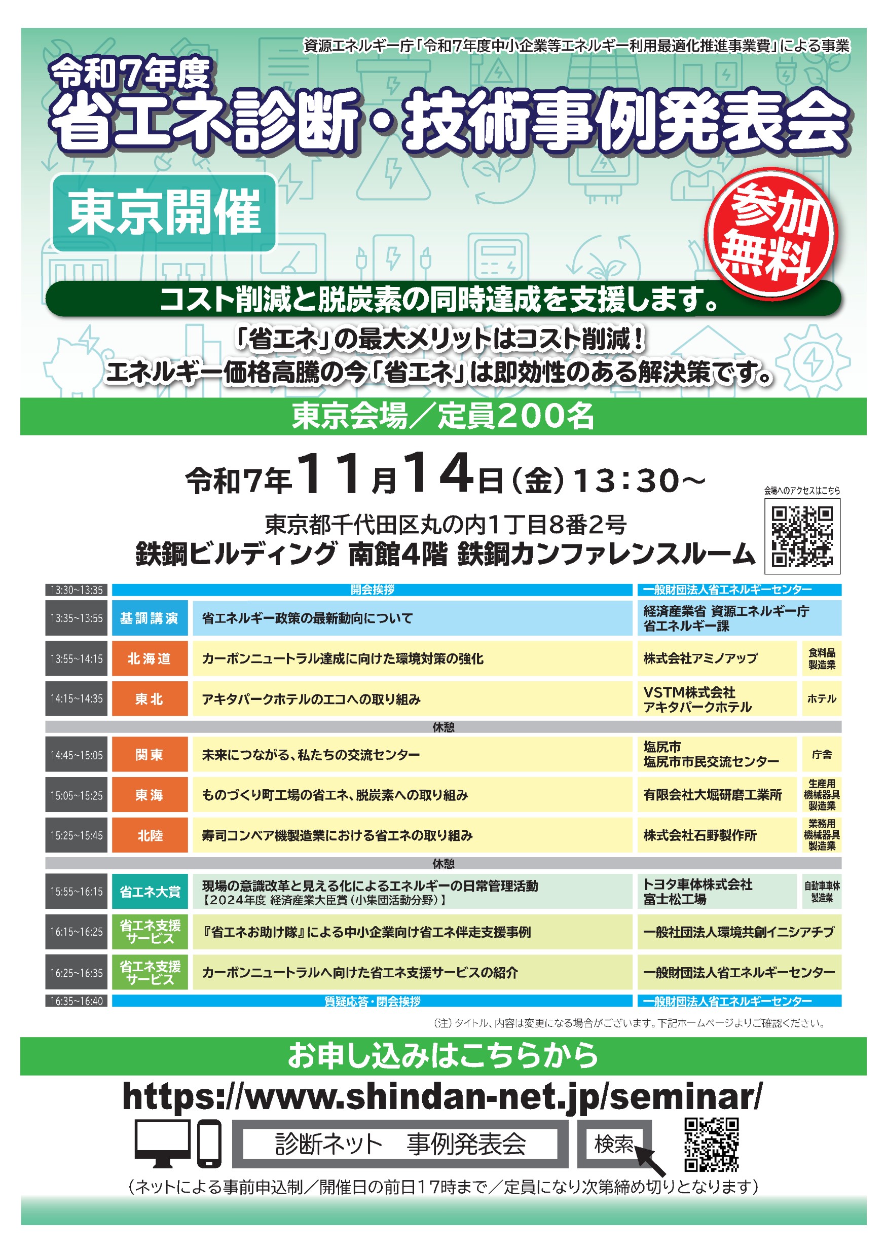 令和7年度 省エネ診断・技術事例発表会(参加無料)の申込み受付を開始しましたので、ご案内いたします。