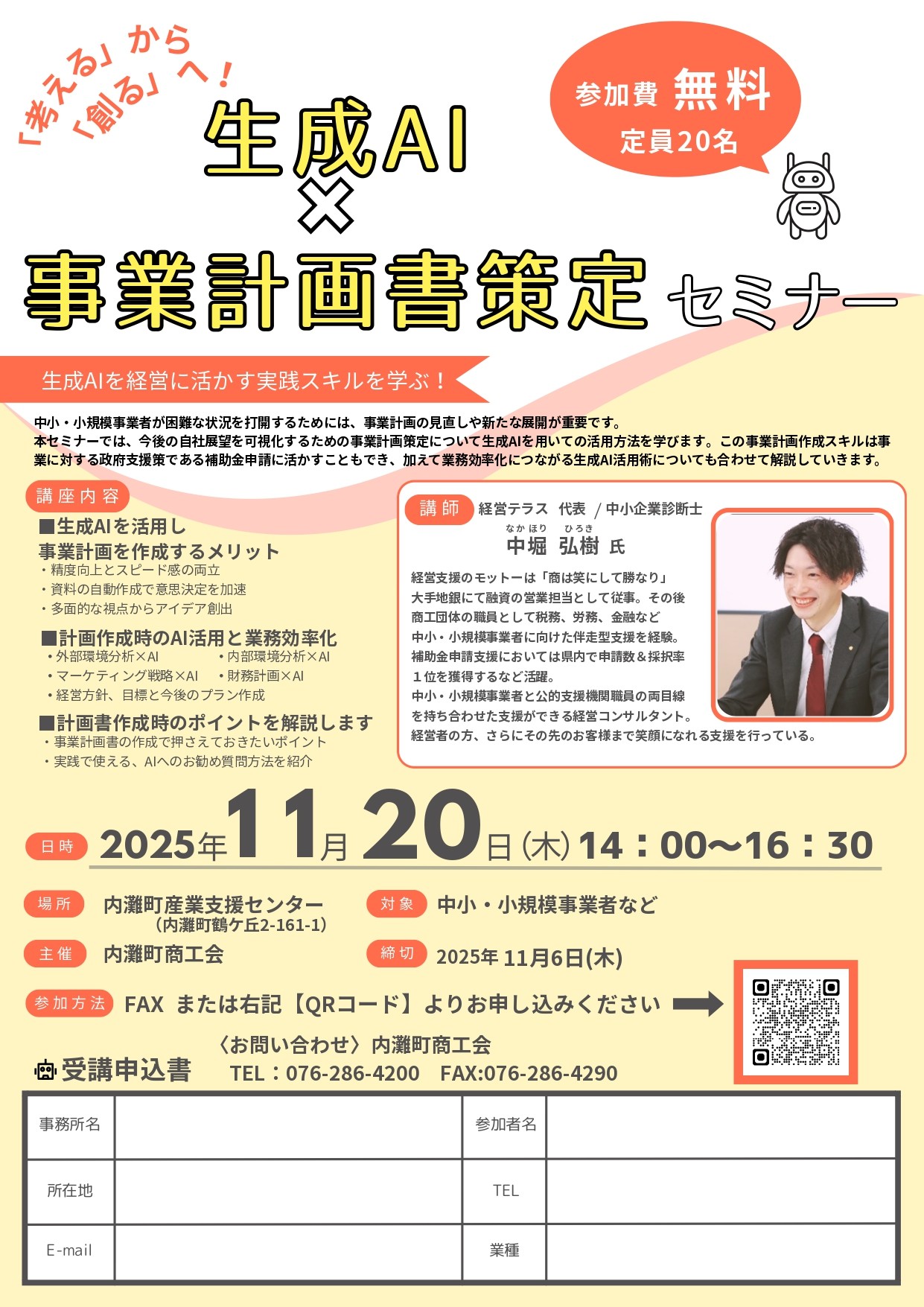 「考える」から「創る」へ! 生成AI×事業計画書策定セミナー