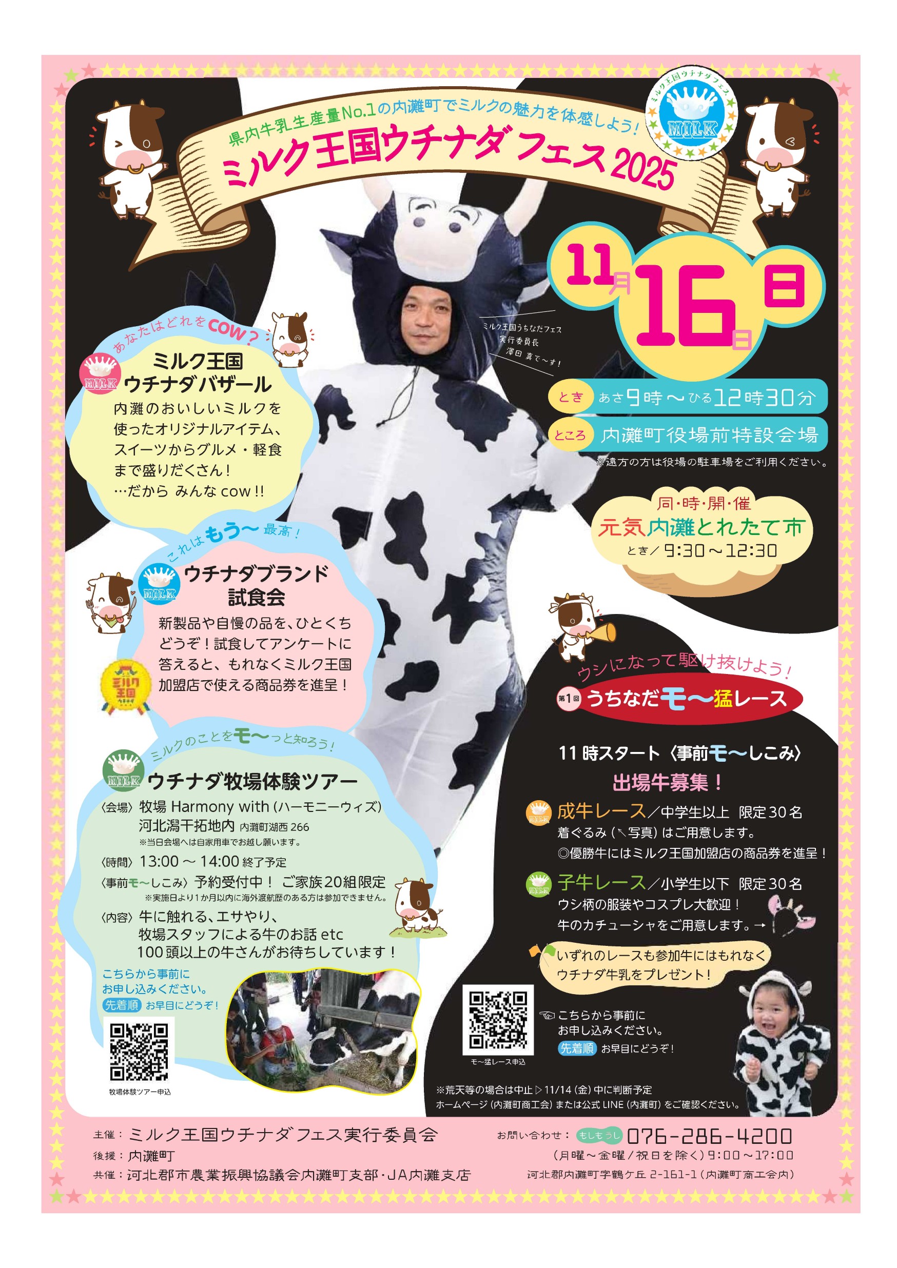 11月16日(日)、内灘町役場前にてミルク王国ウチナダフェスを開催します!