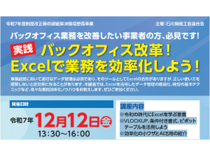 【石川県商工会連合会】 【セミナー】バックオフィス改革!Excelで業務を効率化しよう!